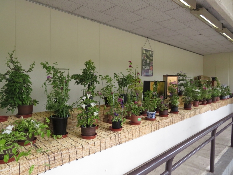 アサガオは咲いたその日には萎れてしまう一日花なので、毎日陳列場に並べる鉢を選んでるのかしら。