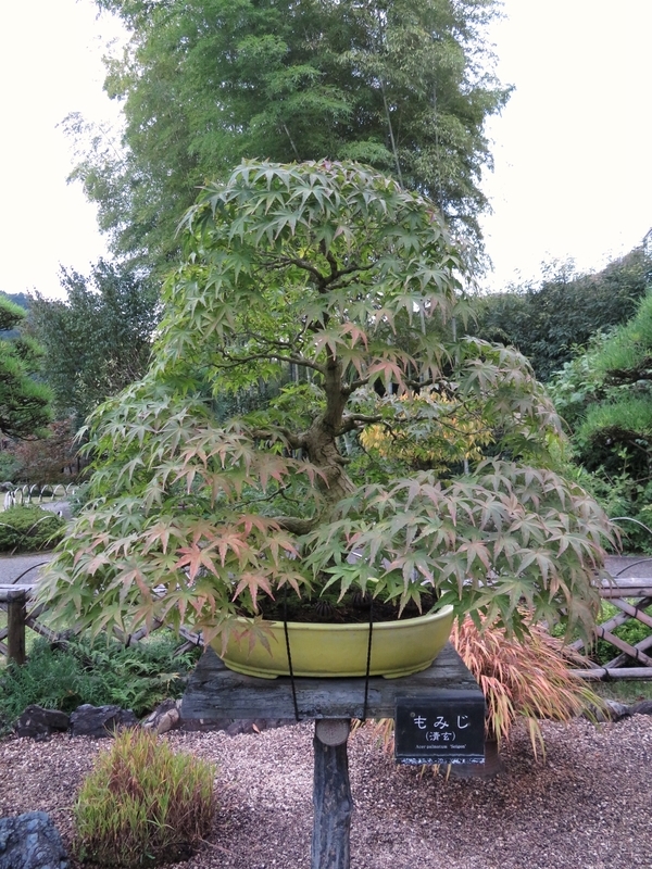 園内には盆栽が多数並んでいて、こちらは山柿。紅葉し始めた葉と色付いた実がまさに秋の風情。