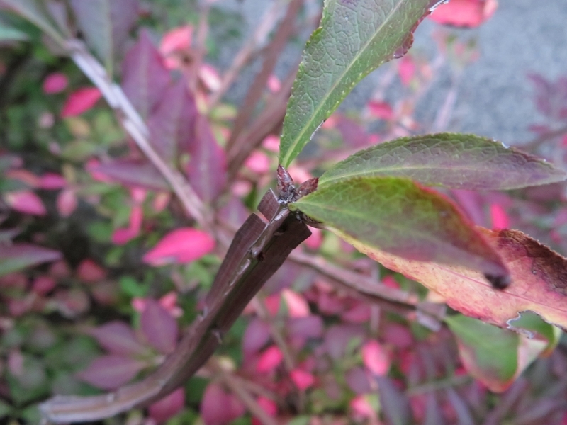 入って正面に飾られてる盆栽。マユミでしょうか。自信がありません。